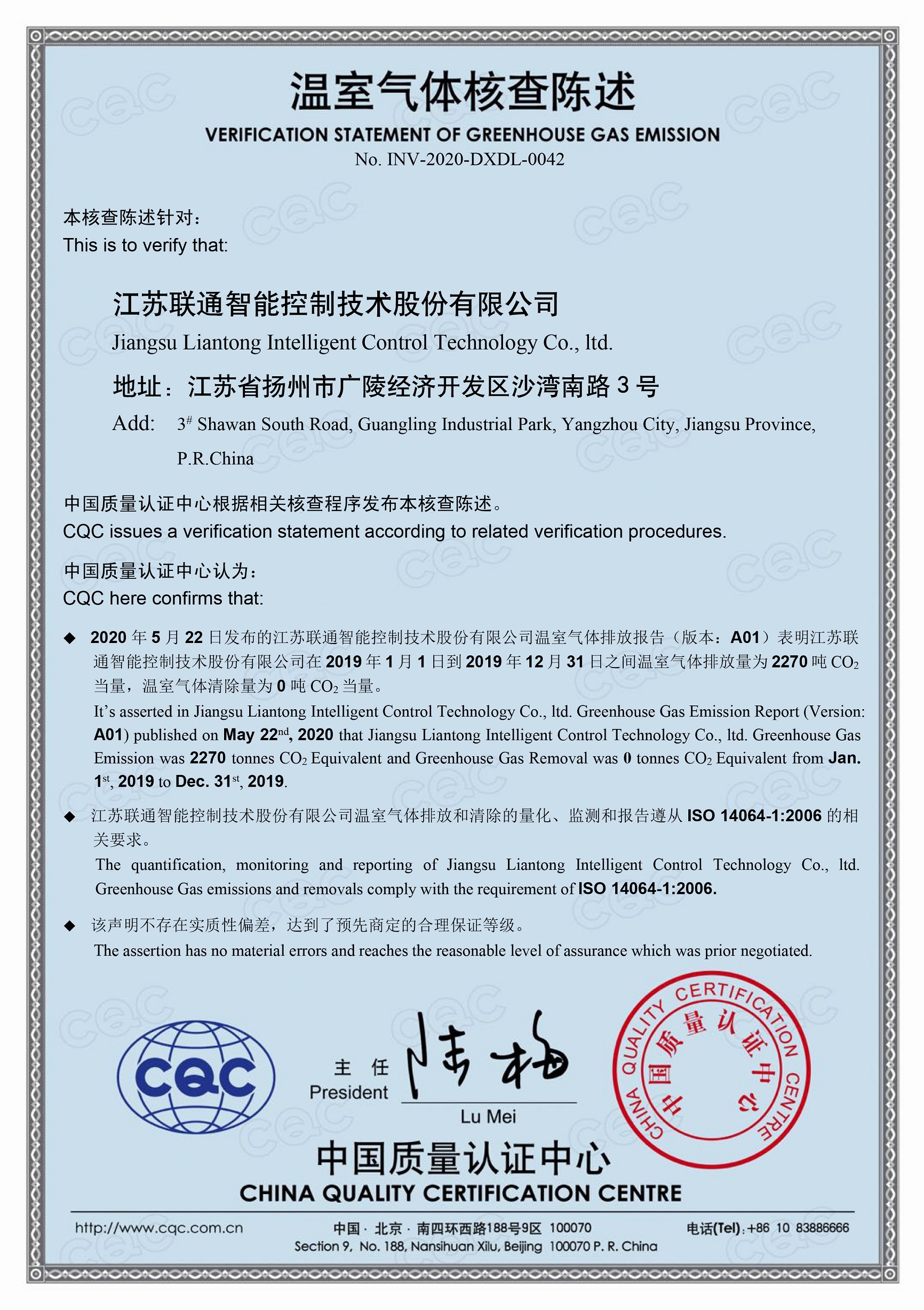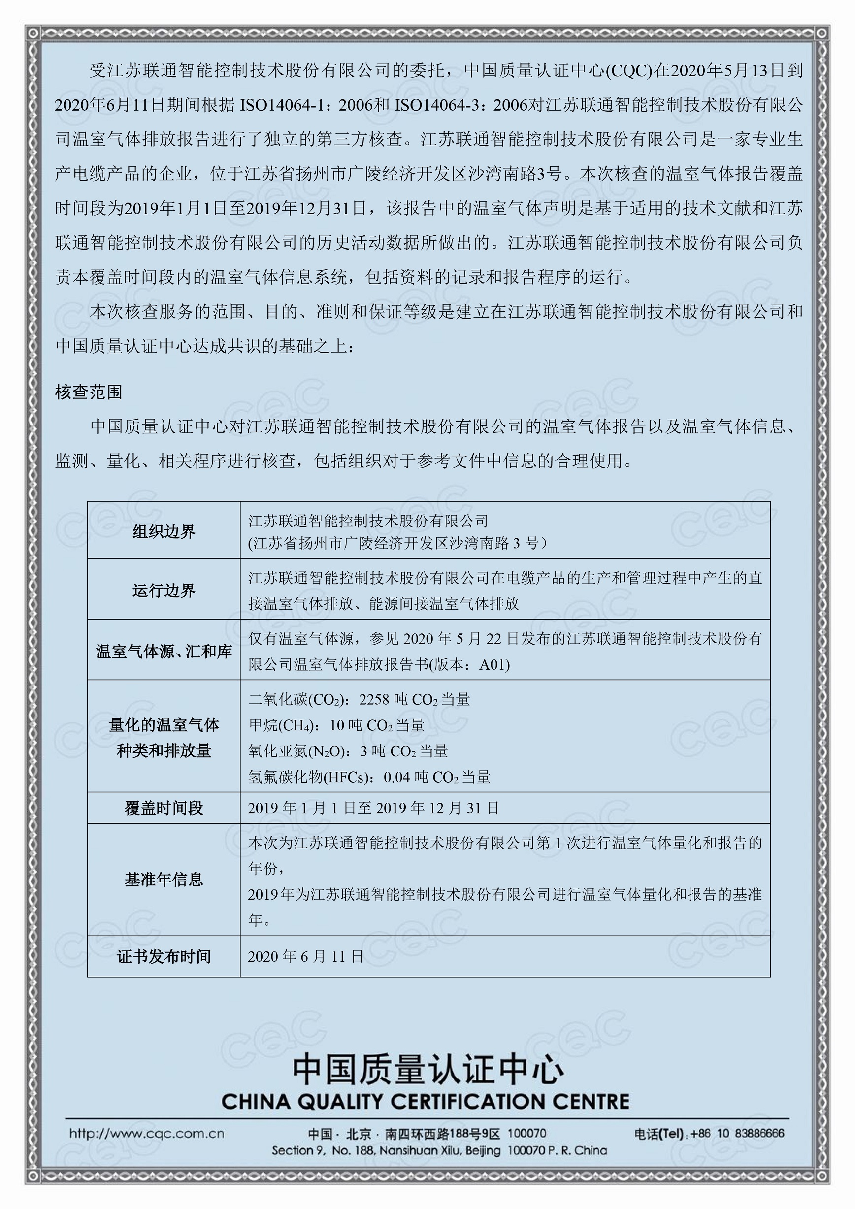 联通智控温室气体核查结果公示